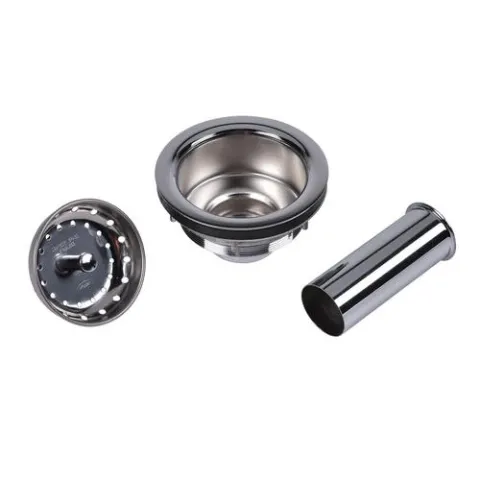 L74T, "Lucky 7" Sink Basket Strainer, with Stainless Steel 4-Prong Basket, Chrome Plated Brass Body, Metal Post, Rubber Stopper, Heavy Locknut, Extra Thick Washer, Machine Cut Threads with Tailpiece
