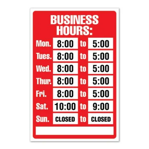 Garvey, 098071, Sign, 8" x 12", Static Cling, Business Hours Kit
