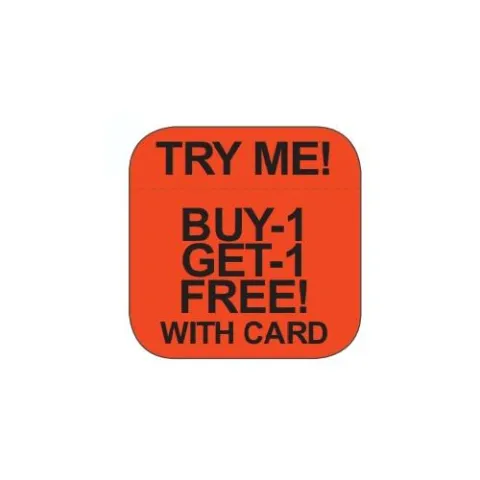 Garvey, BULS-29106, 1.5" Circle Label Red/Blk "Tear Off, Try Me! Buy-1 Get-1 Free with Card"