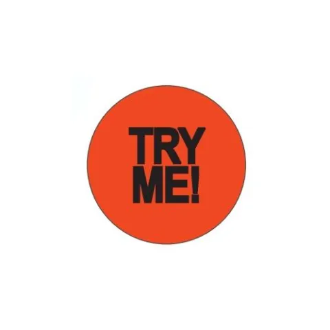 BULS-29108, 1.5" Circle Label Red/Black "Try Me!"